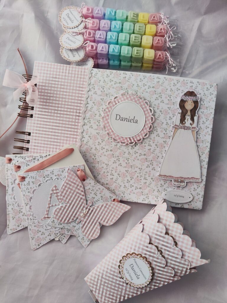 Hay celebraciones que se viven una sola vez, pero cuyos recuerdos nos acompañan siempre. La Primera Comunión es, sin duda, uno de esos momentos especiales que merecen ser guardados con mimo, detalle y mucho cariño. Por eso, este conjunto personalizado ha sido creado pensando en capturar cada emoción, cada sonrisa y cada instante vivido en un día tan significativo.