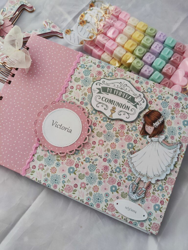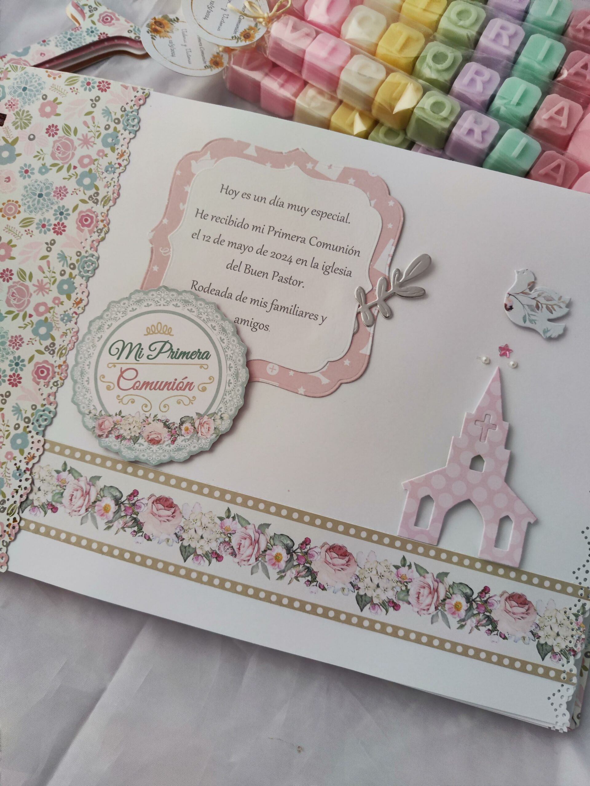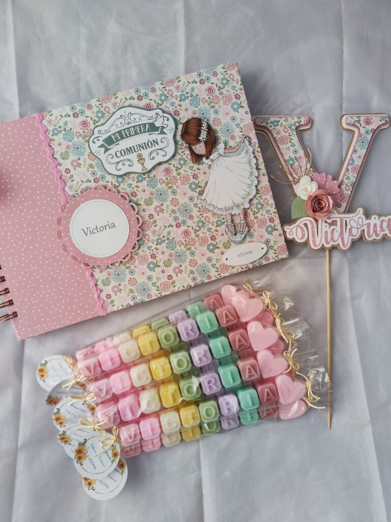 La Primera Comunión es uno de esos momentos que se viven con muchísima ilusión y que, además, merecen ser recordados para siempre. Por eso, en este encargo tan especial, he creado un conjunto de detalles únicos de comunión para Valeria y Victoria, cuidando cada detalle para conseguir una armonía perfecta entre todos los elementos.