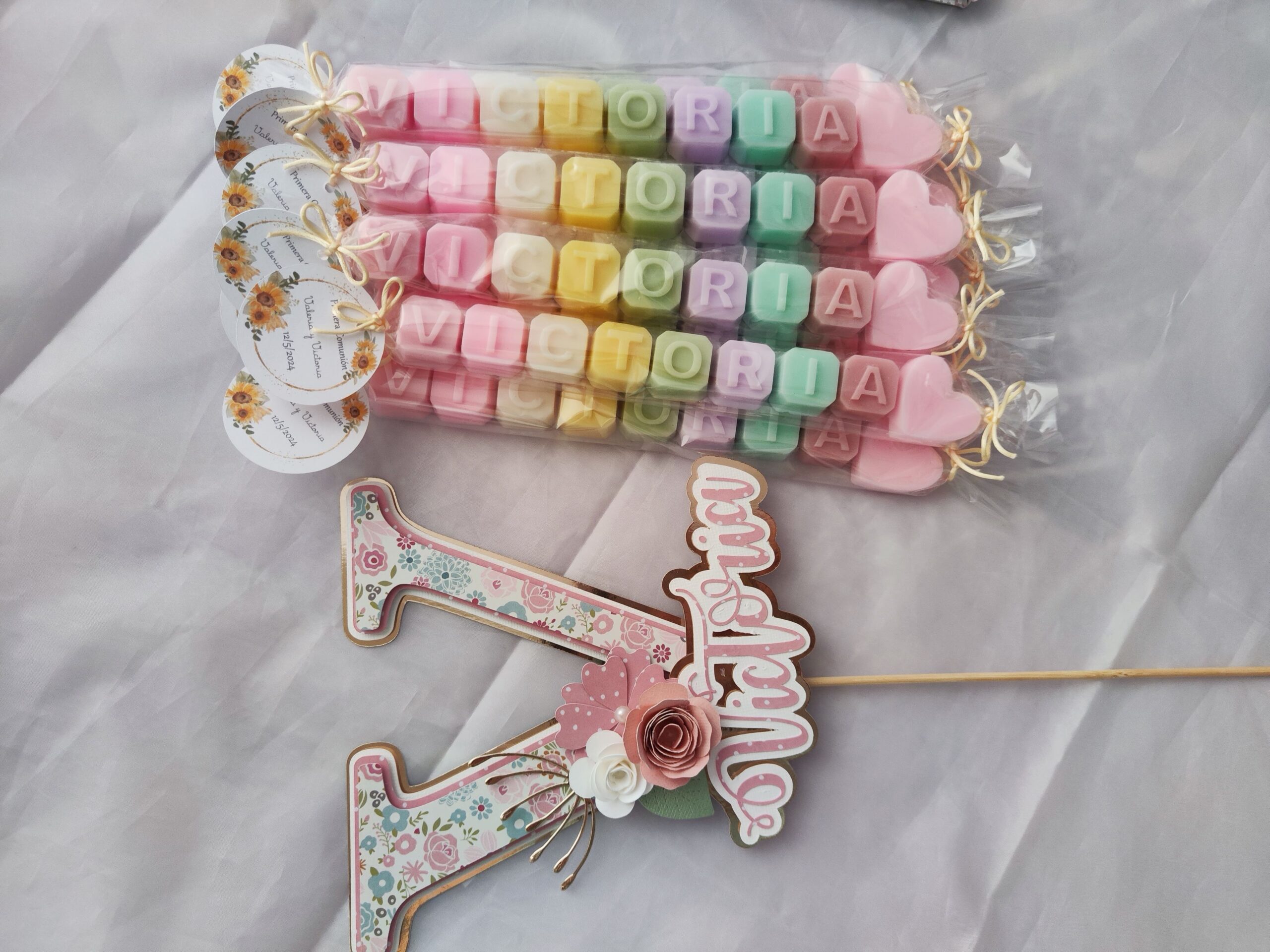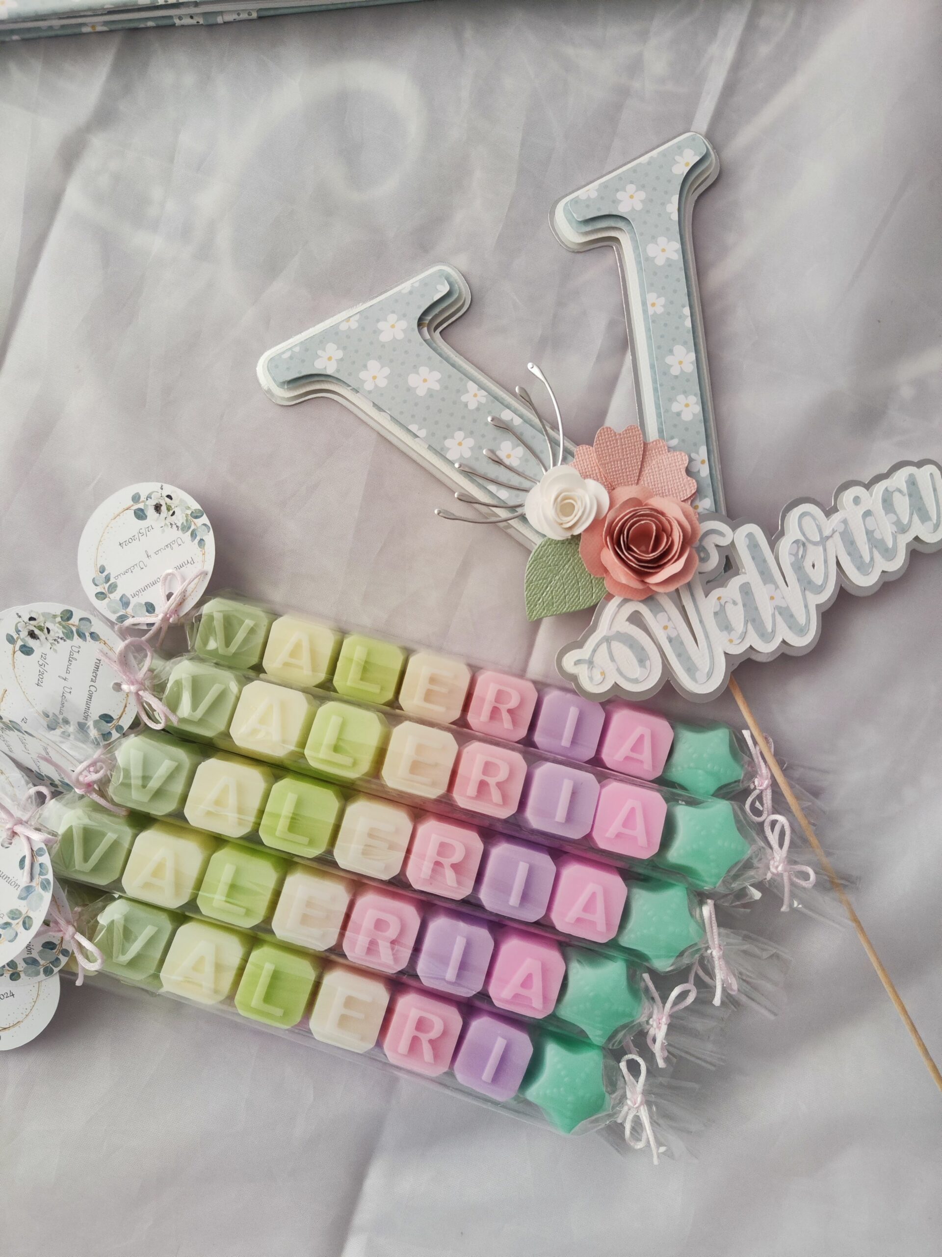 Por otro lado, para los invitados se diseñaron unos jaboncitos personalizados con nombre, una opción cada vez más buscada para Comuniones.