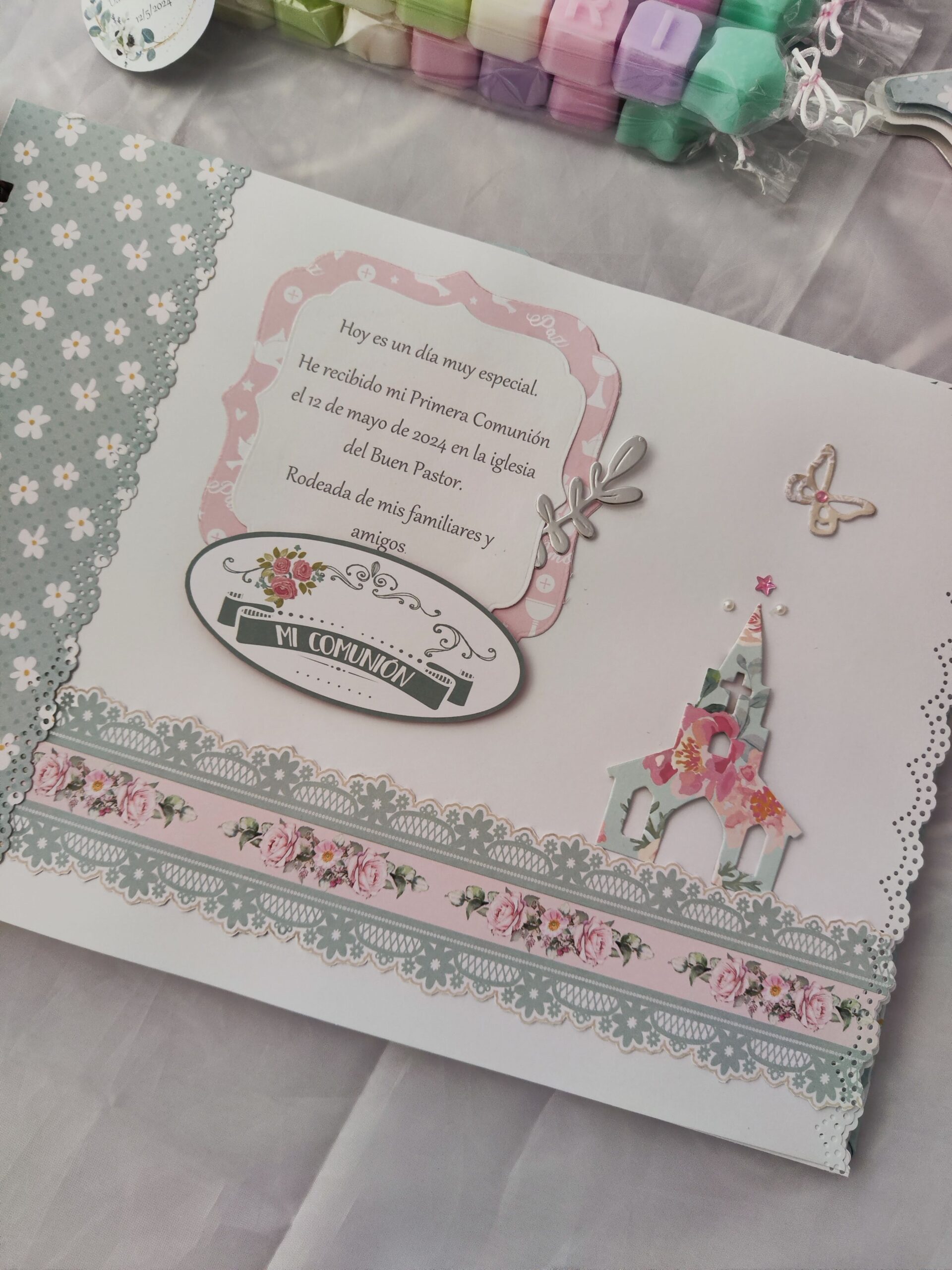 En primer lugar, los protagonistas de este conjunto son los libros de firmas de Primera Comunión personalizados. No solo destacan por su diseño exterior, sino que también su interior está pensado para guardar recuerdos únicos.