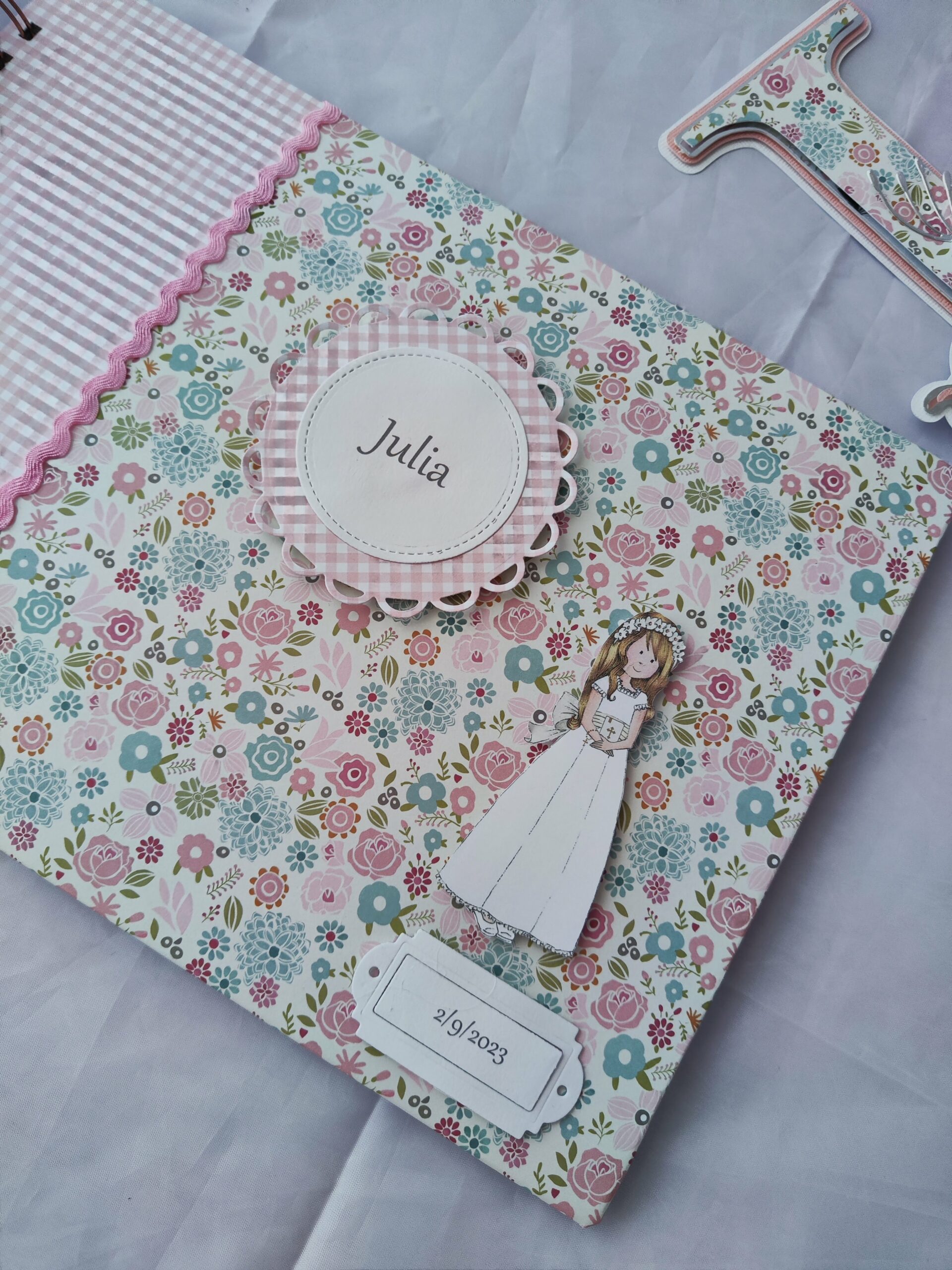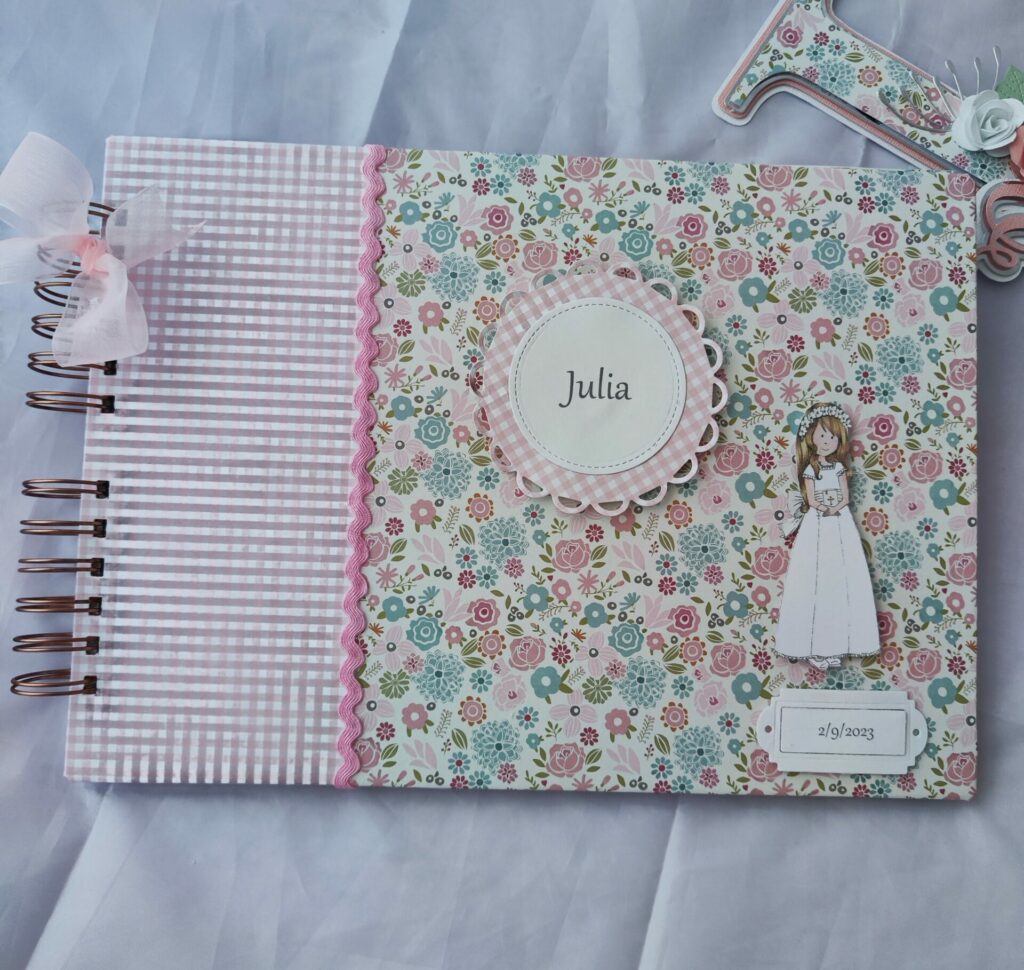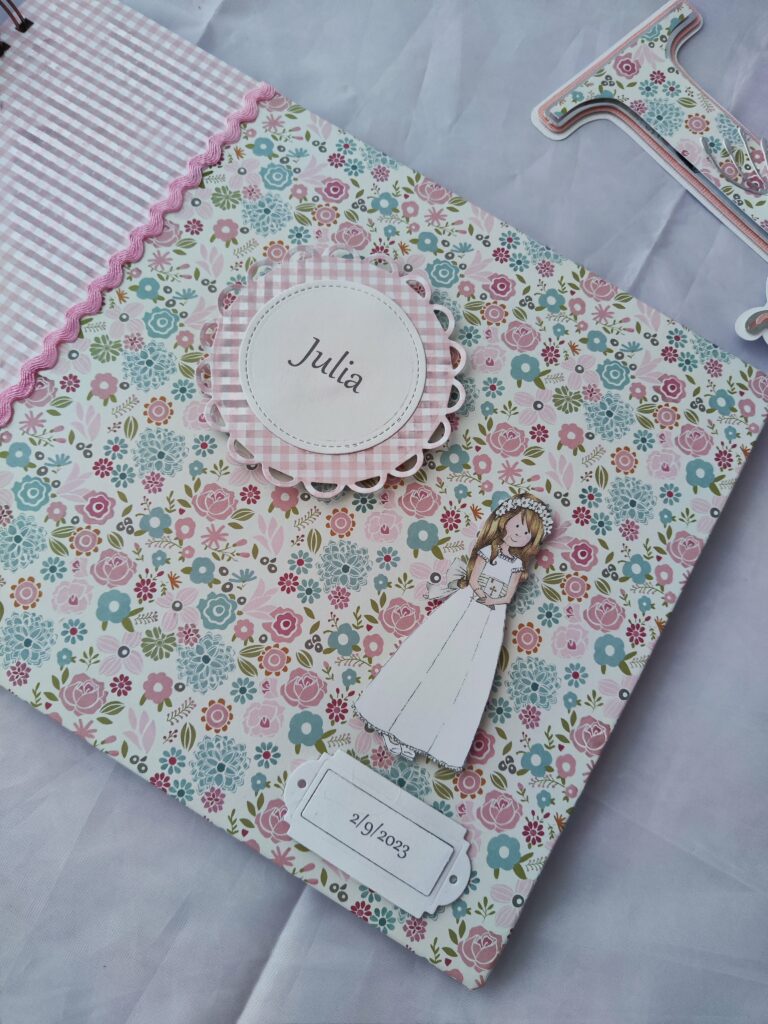 Este encargo tiene algo especialmente bonito: no solo es un libro de firmas, sino un recuerdo que empieza en un día concreto y continúa con el paso del tiempo. Diseñado para Julia, cada detalle está cuidado para transmitir dulzura, armonía y ese aire delicado que acompaña los momentos importantes.