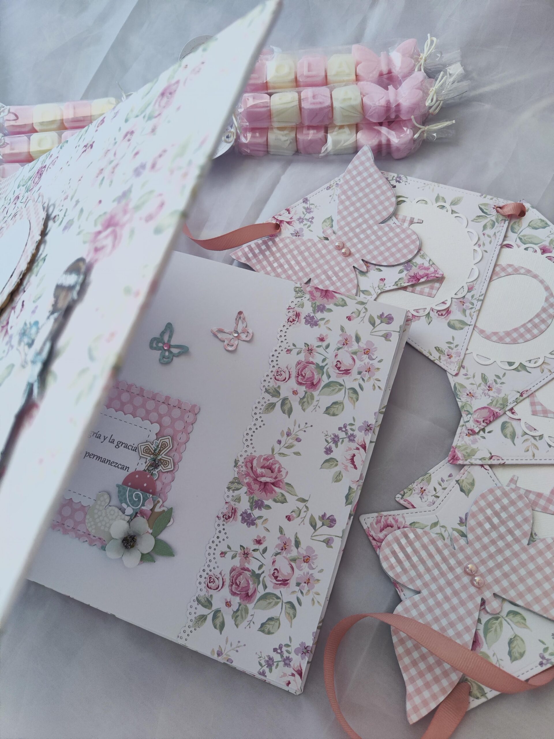 Este libro de Primera Comunión está realizado de forma totalmente artesanal. Cada elemento ha sido seleccionado y trabajado a mano para que el resultado sea único.