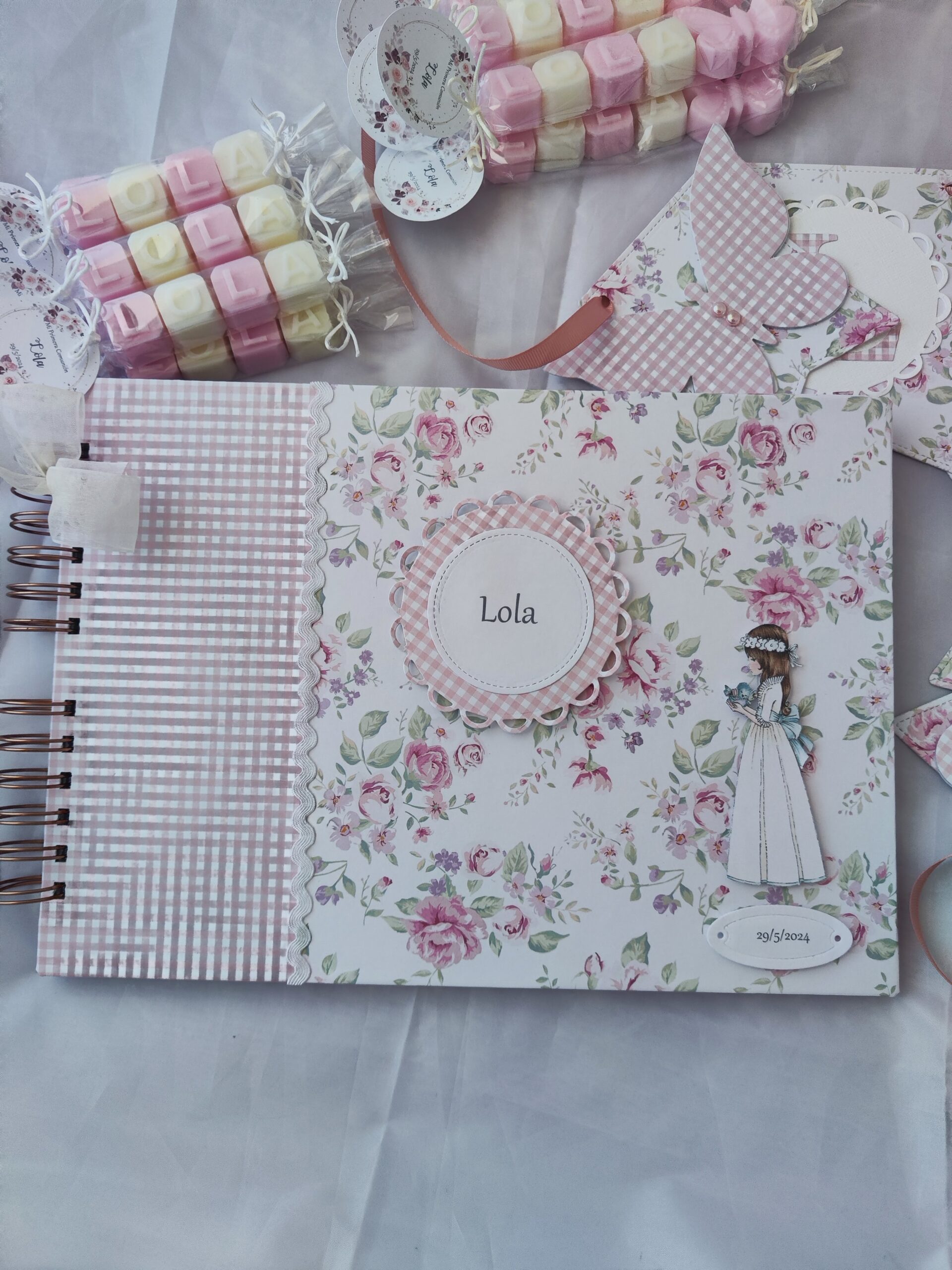 Este libro de firmas lo querían en colores pastel, que fuera un libro en tonos suaves y muy dulce.